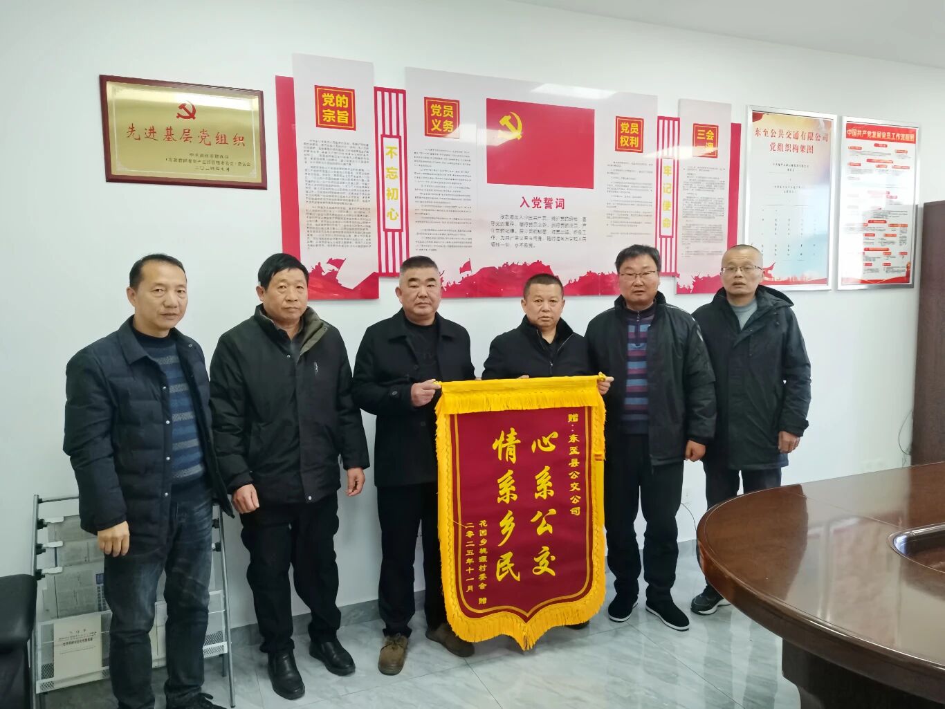 2025年11月25日上午,安徽省池州市東至縣花園鄉(xiāng)桃源村委會(huì)支書一行專程來(lái)到東至公交公司,送上了一面印有“心系公交 情系鄉(xiāng)民”的錦旗,以此表達(dá)對(duì)公司多年來(lái)堅(jiān)持運(yùn)營(yíng)縣城至桃源村公交線路的誠(chéng)摯謝意。