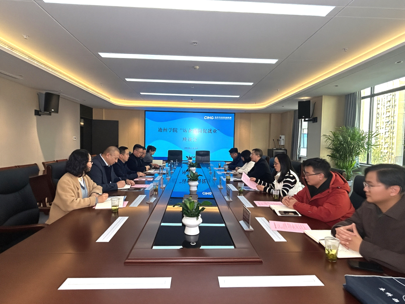 12月16日下午,池州學(xué)院地理與規(guī)劃學(xué)院院長(zhǎng)張樂勤一行赴集團(tuán)開展“訪企拓崗促就業(yè)”活動(dòng),集團(tuán)黨委委員、副董事長(zhǎng)黃代熱情接待并座談交流。集團(tuán)人力資源部及二級(jí)集團(tuán)負(fù)責(zé)人、池州學(xué)院地理與規(guī)劃學(xué)院各系主任參加座談交流。