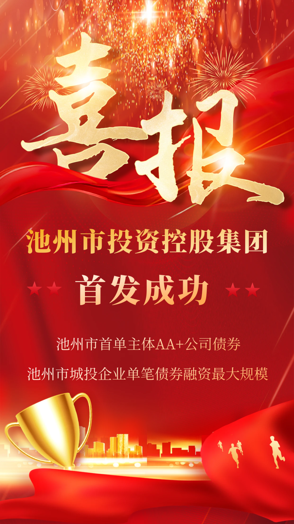 日前,池州市投資控股集團(tuán)有限公司2023年面向?qū)I(yè)投資者非公開發(fā)行公司債券(第一期)成功發(fā)行這是池州市首單主體AA+公司債券也是池州市城投企業(yè)單筆債券融資最大規(guī)模!