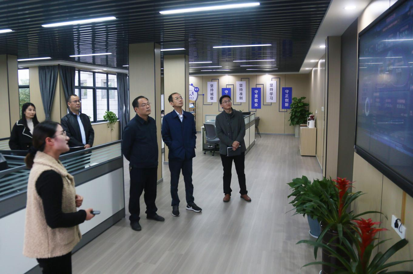 隨后,汪偉一行來到辦公大廳觀看智能運營分析大屏及財務(wù)RPA機器人自動對賬演示,了解了財務(wù)共享運營在線監(jiān)測、財務(wù)綜合分析、預(yù)算指標(biāo)實時監(jiān)控等情況。