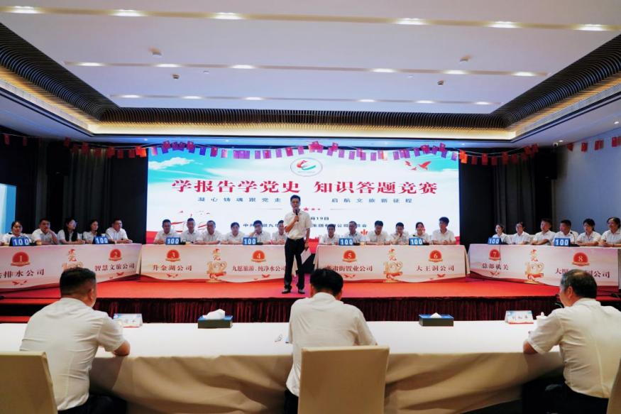 為慶祝中國共產(chǎn)黨成立102周年,深入學(xué)習(xí)宣傳貫徹黨的二十大精神和習(xí)近平新時代中國特色社會主義思想,持續(xù)推動黨史學(xué)習(xí)教育走深走實,6月19日,文旅集團黨委組織開展迎“七一”慶建黨102周年知識競賽活動。黨委委員、副總經(jīng)理章明到場致辭。文旅集團黨委所屬各單位8支隊伍24名參賽選手參加競賽。