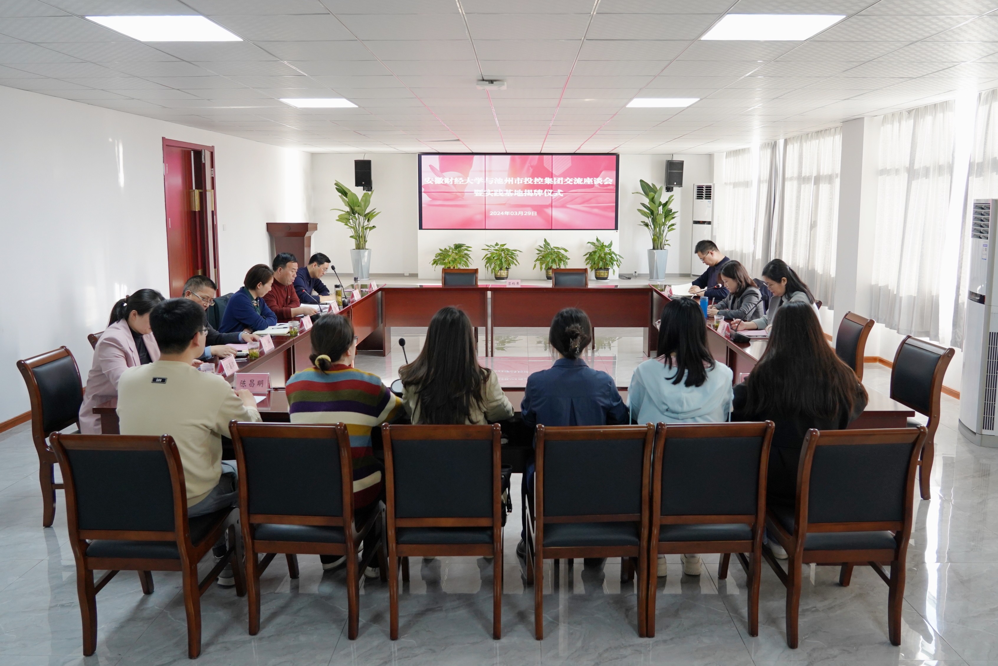 3月29日下午,安徽財經大學與池州市投資控股集團舉行“就業(yè)創(chuàng)業(yè)實踐基地”簽約暨揭牌儀式。安財校黨委常委、副校長趙曉明,校學生處副處長丁龍華,校團委副書記袁寶剛,校團委兼職副書記董松濤,池州市人社局黨組成員、市人事考試指導中心主任章和平,市就業(yè)創(chuàng)業(yè)服務中心主任紀平,就業(yè)促進科科長孟華等有關領導參加活動。儀式由黨委副書記、工會主席嚴艷主持。